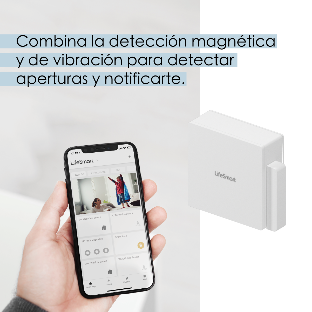 Un sensor fácil de instalar, para todo tipo de aberturas. El Sensor de Apertura de Puertas/Ventanas de LifeSmart, combina la detección magnética y de vibración para detectar aperturas y notificarte, a través de la aplicación de Smart Life.